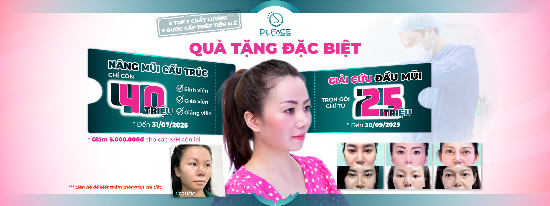 Viện nâng mũi Dr.FACE chuyên sâu về các phương pháp khắc phục, chỉnh sửa, tạo hình dáng mũi. Với phương châm lấy sự an toàn và hài lòng của khách hàng làm yếu tố tiên quyết cho sự phát triển và thành công. DrFace cam kết mang lại những giá trị tốt đẹp cho khách hàng với: